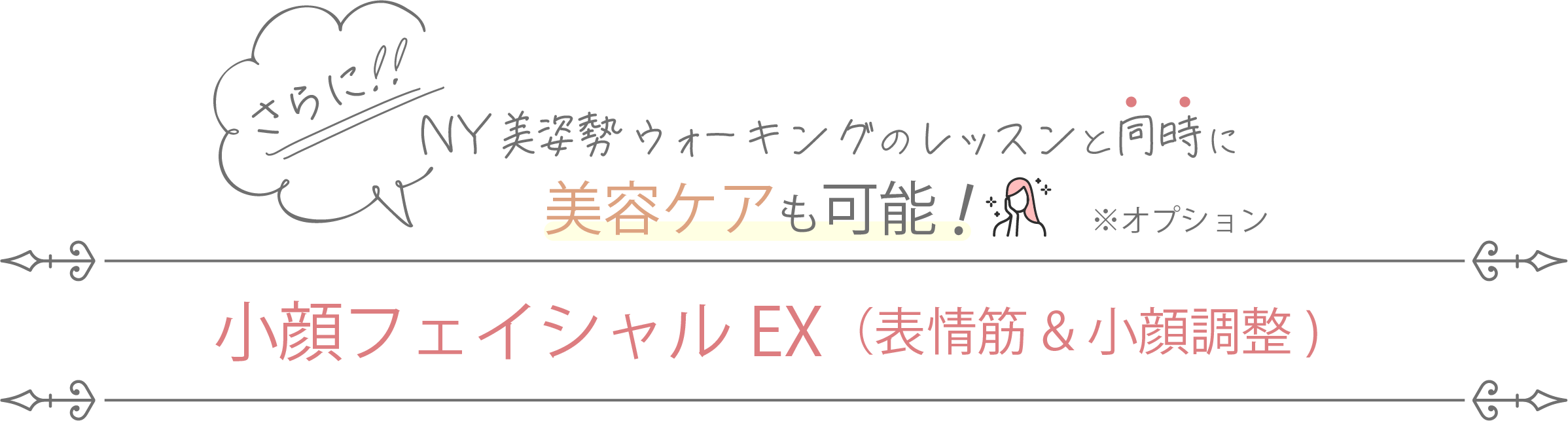 ※小顔フェイシャルEXはNY美姿勢ウォーキングのレッスンと同時に行うオプションです。小顔フェイシャルEXのみのご利用はできませんのでご了承ください。