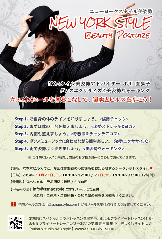 【満員御礼☆感謝】第6弾11月【NYスタイル★美姿勢コラボレッスン】in 六本木ヒルズ 〜たった2時間でヒール美姿勢〜